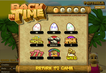 Перед запуском симулятора Back In Time рекомендуем изучить таблицу выплат. Так как этот аппарат оснащен всего тремя барабанами, то вы не найдете большого количества символов. Однако развлекаться все равно будет не скучно, так как разработчик предусмотрел очень интересную функциональную возможность. После каждого раунда вы можете выбрать один или несколько символов, которые не будут меняться в следующем раунде, т.е. они будут удерживаться на барабанах. Учитывая, что здесь имеется Дикий символ, представьте, что будет, если вы постоянно будете удерживать Вайлд на игровом поле. Выигрыш может составить очень большую сумму.